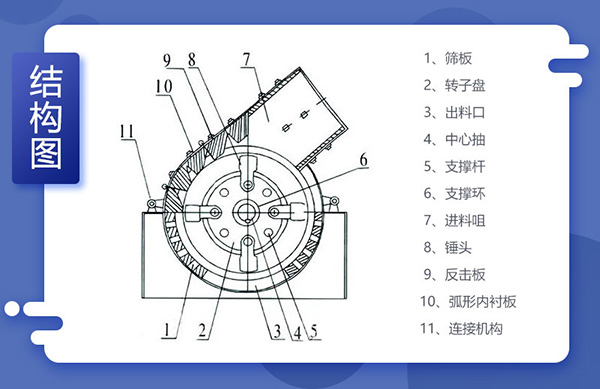 錘式破碎機結(jié)構(gòu):錘式破碎機的工作原理: