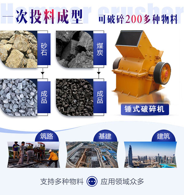 錘式破碎機是直接將大粒度為600-1800毫米的物料破碎至25或25毫米以下的一段破碎用破碎機。