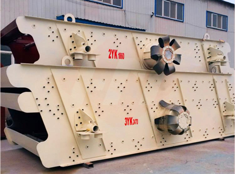 直線振動篩利用普通電機外拖動 ,依靠激振器重心偏移自同步或強迫性同步運動,使篩體沿激振力方向作周期性往復(fù)振動,物料在篩面上沿直線方向作拋物線運動,從而達到篩分目的。